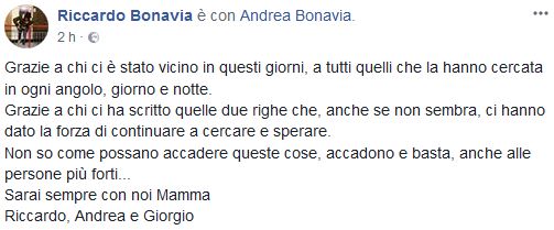 Durante l'ultima puntata di "Chi l'ha visto?" il figlio Riccardo aveva escluso l'ipotesi del malore e aveva aggiunto: «Ogni volta che si allontanava per uno-due giorni ci avvisava».