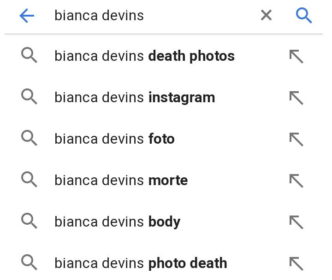 PORNOGRAFIA DEL DOLORE - Basta fare una breve indagine su Google per rendersi conto che un numero spropositato di persone ha cercato quella foto. L'algoritmo, che mette in primo piano i risultati consigliati quando si cerca qualcosa, si rifà anche e soprattutto a ricerche precedenti di altri utenti ed ecco i risultati che compaiono sullo schermo scrivendo "Bianca Devins": "Bianca Devins death photos" ("foto della morte di Bianca Devins"), "Bianca Devins body" ("il corpo di Bianca Devins"), "Bianca Devins death photo" ("foto -al singolare- della morte di Bianca Devins"), un italianissimo "Bianca Devins foto" e così via.