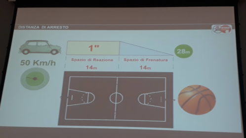 Il punto è che il nostro comportamento si incrocia con quello degli altri: secondo una ricerca dell'Università Cattolica del Sacro Cuore l'intervallo di reazione psicotecnico è pochissimo, per la precisione si ha 1 secondo per decidere cosa fare e quindi 14 metri; a una media velocità (50 km/h) e sommato allo spazio di frenatura questo secondo corrisponde a un campo da basket.